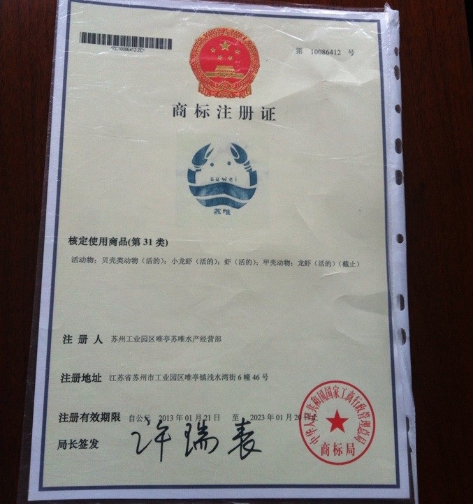 —苏州市阳澄湖大闸蟹行业协会会员证